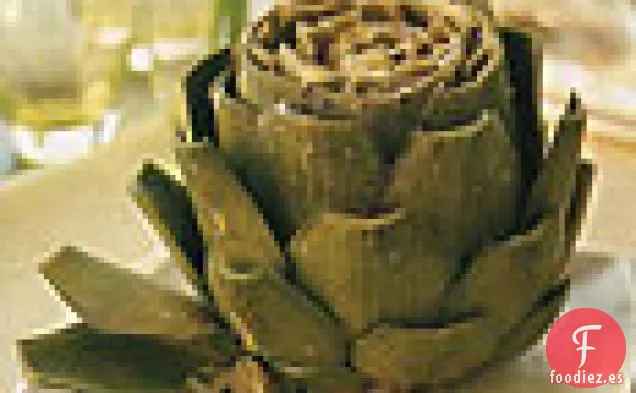 Escurrir bien las alcachofas. (Se puede preparar con 8 horas de anticipación. Tapar y refrigerar. Cocer al vapor las alcachofas 10 minutos para volver a calentar antes de continuar.)