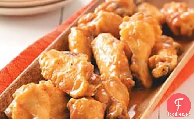 Coloque las alitas en un tazón grande; vierta la salsa y revuelva para cubrir.