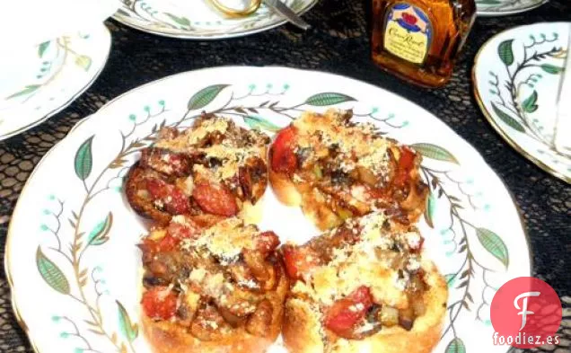 La Bruschetta de champiñones de la receta podría satisfacer su antojo mediterráneo en aproximadamente 40 minutos. Para $2.33 por porción, esta receta cubiertas 12% de sus necesidades diarias de vitaminas y minerales. Esta receta sirve 6 personas. Una porción de este plato contiene aproximadamente 12g de proteína, 44g de grasa y un total de 693 calorías. 1 persona ha hecho esta receta y la volvería a hacer. Una mezcla de salsa de tomate, pimiento agrietado, pimientos asados y un puñado de otros ingredientes son todo lo que se necesita para hacer esta receta tan deliciosa. Funciona bien como un hor d'oeuvre bastante barato. Considerándolo todo, decidimos esta receta merece una puntuación espátula de 31%. Esta puntuación es bastante mala. Similar recetas Bruschetta de Champiñones y Gruyere, Bruschetta de Champiñones y Parmesano, y Duxelles de Setas en Bruschetta.