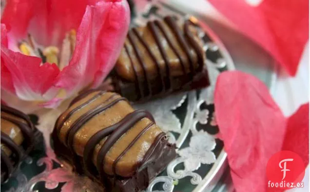 Retire el aire de la bolsa y selle la bolsa. Con unas tijeras, corta un agujero muy pequeño en una esquina de la bolsa. Comenzando con el papel encerado, rocíe el chocolate derretido de un lado a otro sobre los dulces. Deje que el chocolate se endurezca unos 20 minutos.¡Comparte y disfruta con tus seres queridos!