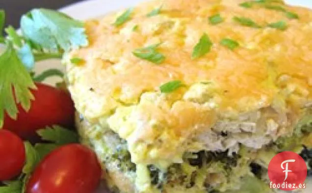 Coloque el brócoli cocido en una fuente para hornear preparada. Coloca el pollo sobre el brócoli.