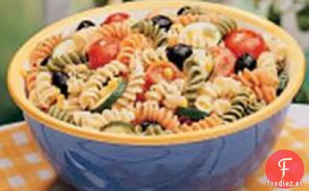 La ensalada de pasta de picnic podría ser solo el plato de acompañamiento que está buscando. Esta receta sirve 12 y cuesta 97 centavos por porción. Viendo su figura? Esta receta sin lácteos tiene 349 calorías, 9g de proteína, y 12g de grasa por porción. No mucha gente hizo esta receta, y 1 diría que acertó. Es traído a usted por Allrecipes. Si tienes a mano aceite vegetal, vinagre de estragón, maíz y algunos otros ingredientes, puedes prepararlo. Desde la preparación hasta el plato, esta receta toma alrededor 15 minutos. Considerándolo todo, decidimos esta receta merece una puntuación espátula de 48%. Esta puntuación es bastante buena. Tratar Ensalada de Pasta de Picnic, Ensalada de Pasta de Picnic, y Ensalada de Pasta de Picnic para recetas similares.