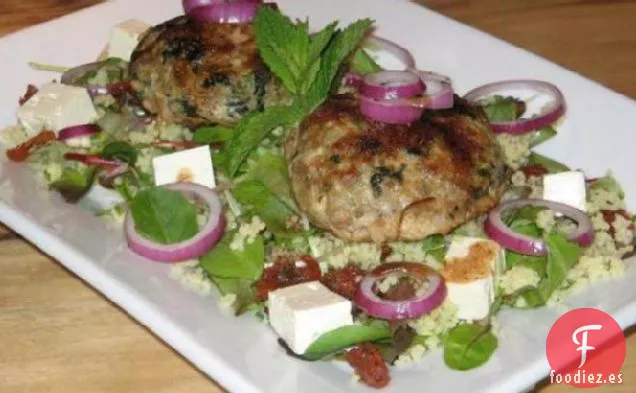 Nunca puede tener demasiadas recetas de platos principales, así que pruebe las hamburguesas de cordero, Espinacas y queso Feta. Esta receta sirve para 4 personas. Para $3.05 por porción, esta receta cubiertas 32% de sus necesidades diarias de vitaminas y minerales. Una porción contiene 533 calorías, 31g de proteína, y 38g de grasa. 1 persona ha hecho esta receta y la volvería a hacer. Solo a unas pocas personas les gustó este plato americano. Desde la preparación hasta el plato, esta receta toma aproximadamente 31 minutos. Una mezcla de pan rallado, sal y pimienta, queso feta y un puñado de otros ingredientes son todo lo que se necesita para hacer esta receta tan sabrosa. Considerándolo todo, decidimos esta receta merece una puntuación de espátula de 74%. Esta puntuación es bastante buena. Recetas similares incluyen Hamburguesas de Cordero con Queso Feta y Espinacas, Hamburguesas de Pollo con Espinacas y Queso Feta (también conocidas como Hamburguesas Spanakopita) con Halloumi a la Parrilla, Pimientos Rojos Asados y una Salsa de Espinacas y Queso Feta, y Hamburguesas de Cordero y Queso Feta.