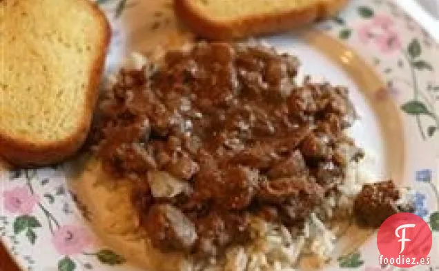 Caliente 1 cucharada de aceite de oliva y mantequilla en una sartén grande a fuego medio. Agregue la cebolla y cocine hasta que esté tierna, aproximadamente 7 minutos. Aumente el fuego a medio-alto e incorpore los hígados de pollo; cocine durante 2 minutos, teniendo cuidado de no cocer demasiado los hígados. Agregue la pasta de tomate, la salsa inglesa, el caldo de pollo y el adobo reservado. Cocine a fuego lento durante 5 minutos.