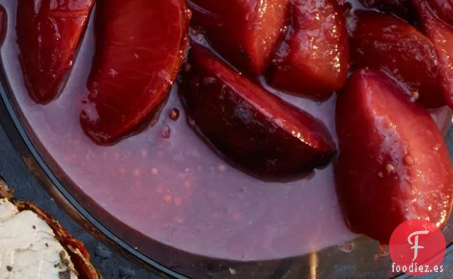 Añadir los melocotones; llevar a fuego lento. Cocine a fuego medio, girando una o dos veces, hasta que esté tierno cuando se perfore con un cuchillo afilado que mantenga su forma, 5-7 minutos.