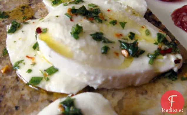 Rocíe el adobo sobre las rodajas de queso y deje reposar de 30 minutos a 1 hora antes de servir.