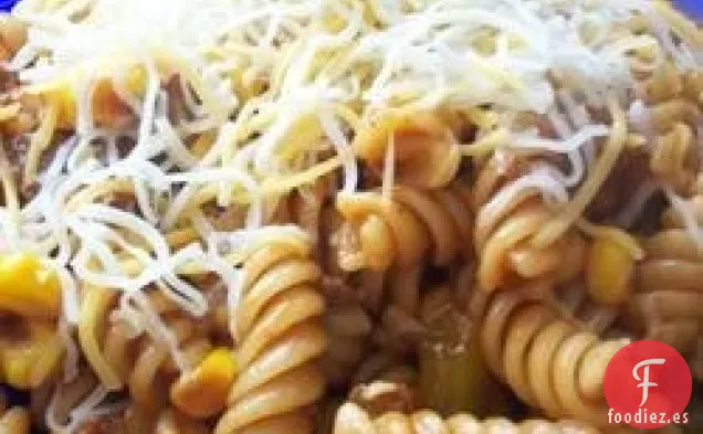 La pasta con chile a la barbacoa podría ser solo el plato principal que está buscando. Esta receta sirve 6 personas. Viendo su figura? Esta receta sin lácteos tiene 347 calorías, 17g de proteína, y 5g de grasa por porción. Para $1.4 por porción, esta receta cubiertas 16% de sus necesidades diarias de vitaminas y minerales. Es perfecto para El Super Bowl. Solo unas pocas personas hicieron esta receta, y 1 diría que dio en el clavo. Es un asequible receta para los fanáticos de la comida americana. Una mezcla de salsa de barbacoa, cebolla, pasta rotini y un puñado de otros ingredientes son todo lo que se necesita para hacer esta receta tan deliciosa. Para usar la sal, puede seguir este plato principal con el Receta de Empanadas de Manzana como postre. Es traído a usted por Allrecipes. Considerándolo todo, decidimos esta receta merece una puntuación de espátula de 52%. Esta puntuación es buena. Recetas similares incluyen Albóndigas de BARBACOA, El Mejor Pastel de Carne a la BARBACOA, y Sartén para Pasta con Chile.