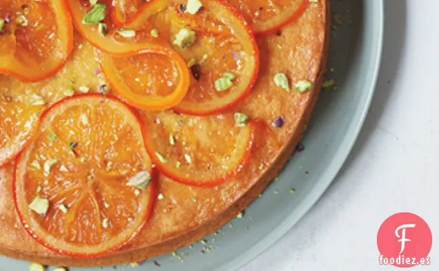 Retire los pansides. Coloca las rodajas de naranja confitadas encima.
