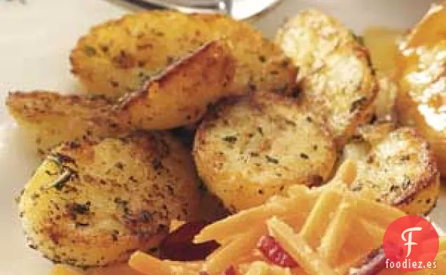 En una sartén grande a fuego medio, cocina las papas en mantequilla y aceite durante 6-8 minutos o hasta que se doren.