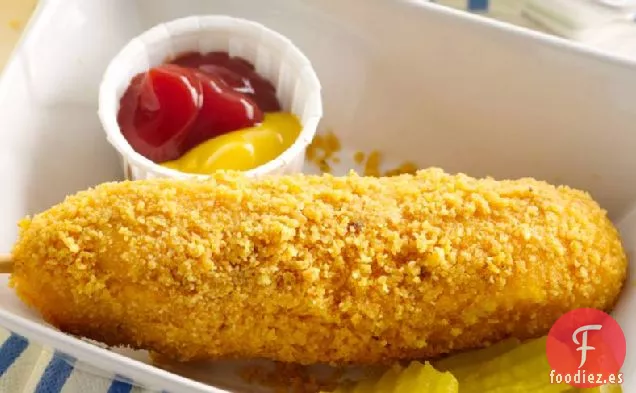 Hornee de 10 a 15 minutos o hasta que los perritos calientes estén calientes y el recubrimiento esté ligeramente dorado.