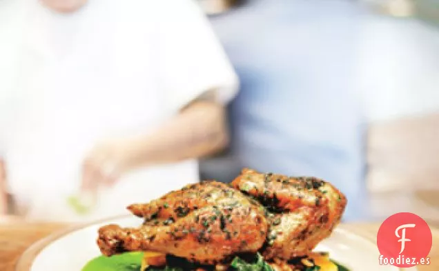 Pollo Asado en Sartén con Farro y Pistou de Hierbas