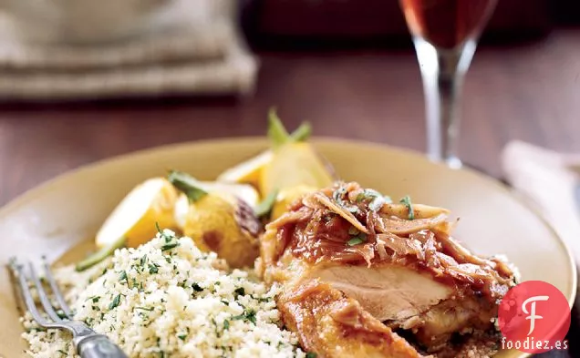 Regrese el pollo a la sartén con la piel hacia arriba. Tape y cocine a fuego lento hasta que esté bien cocido, aproximadamente 20 minutos.